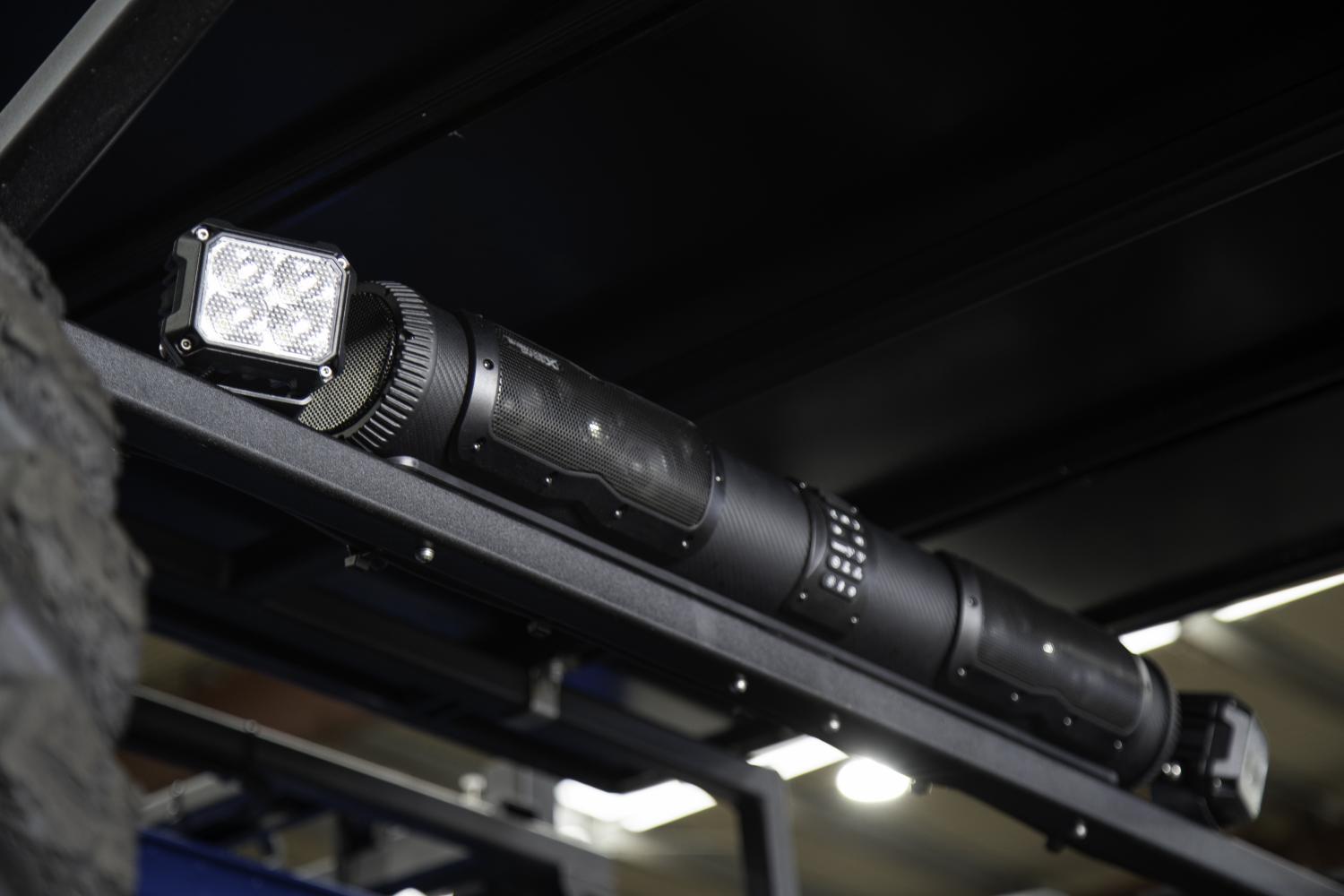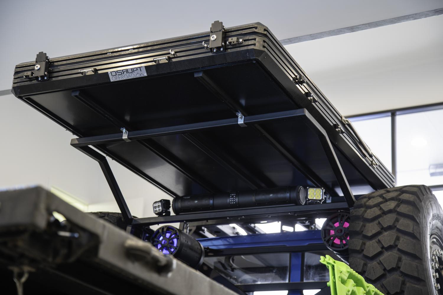 - Custom Dual Tyre Carrier with Overhead Roof Top Tent Mounts